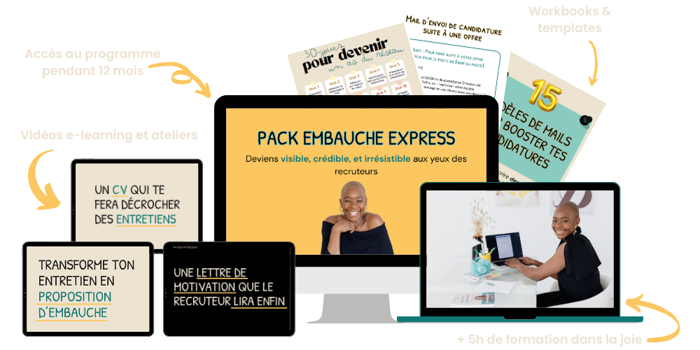 Avec Le Pack Embauche Express, tu as tout ce qu’il te faut pour transformer ton profil, devenir visible, crédible, et décrocher le job que tu vises, dès les prochaines semaines.