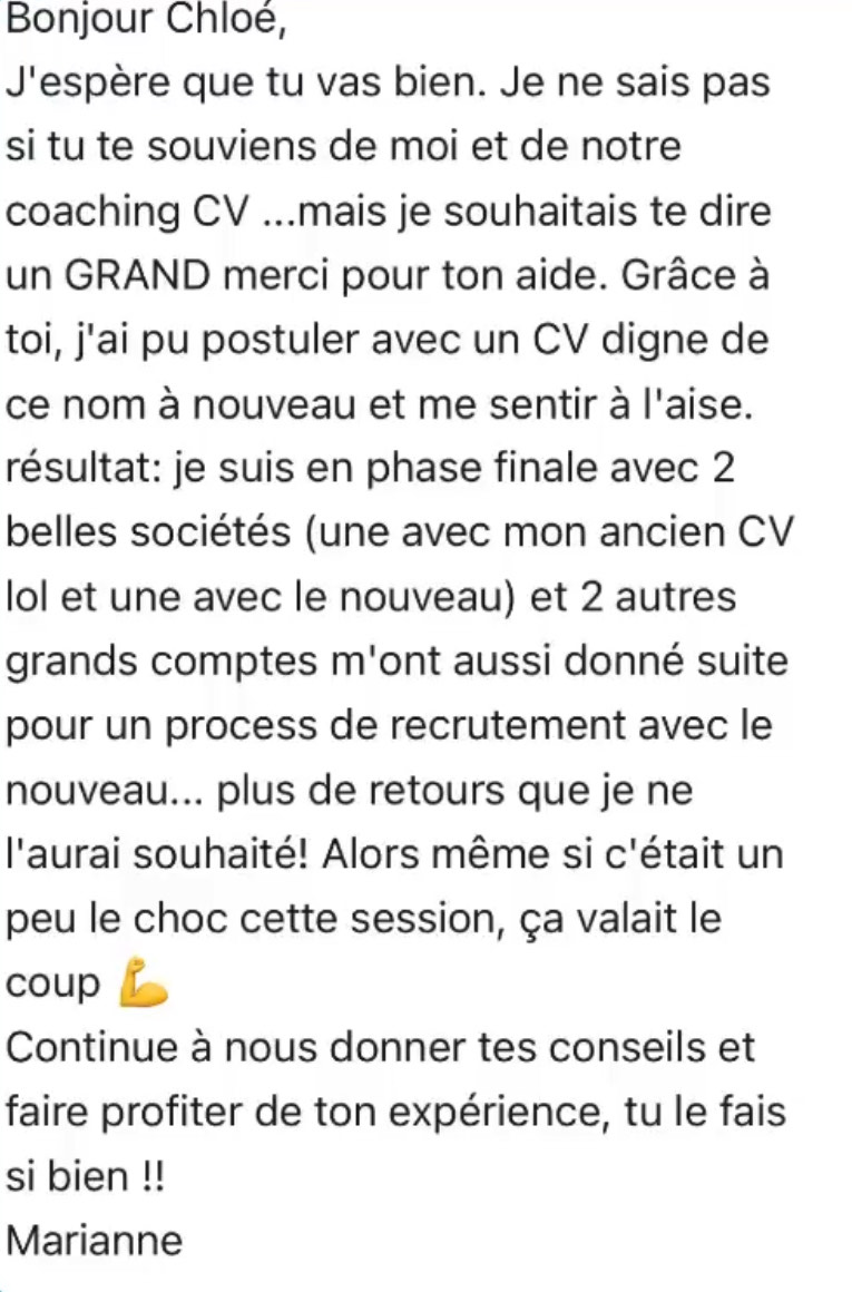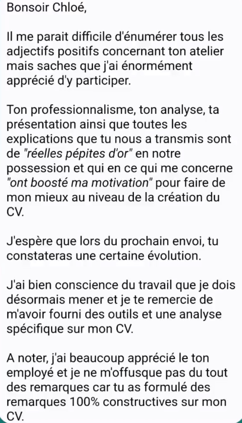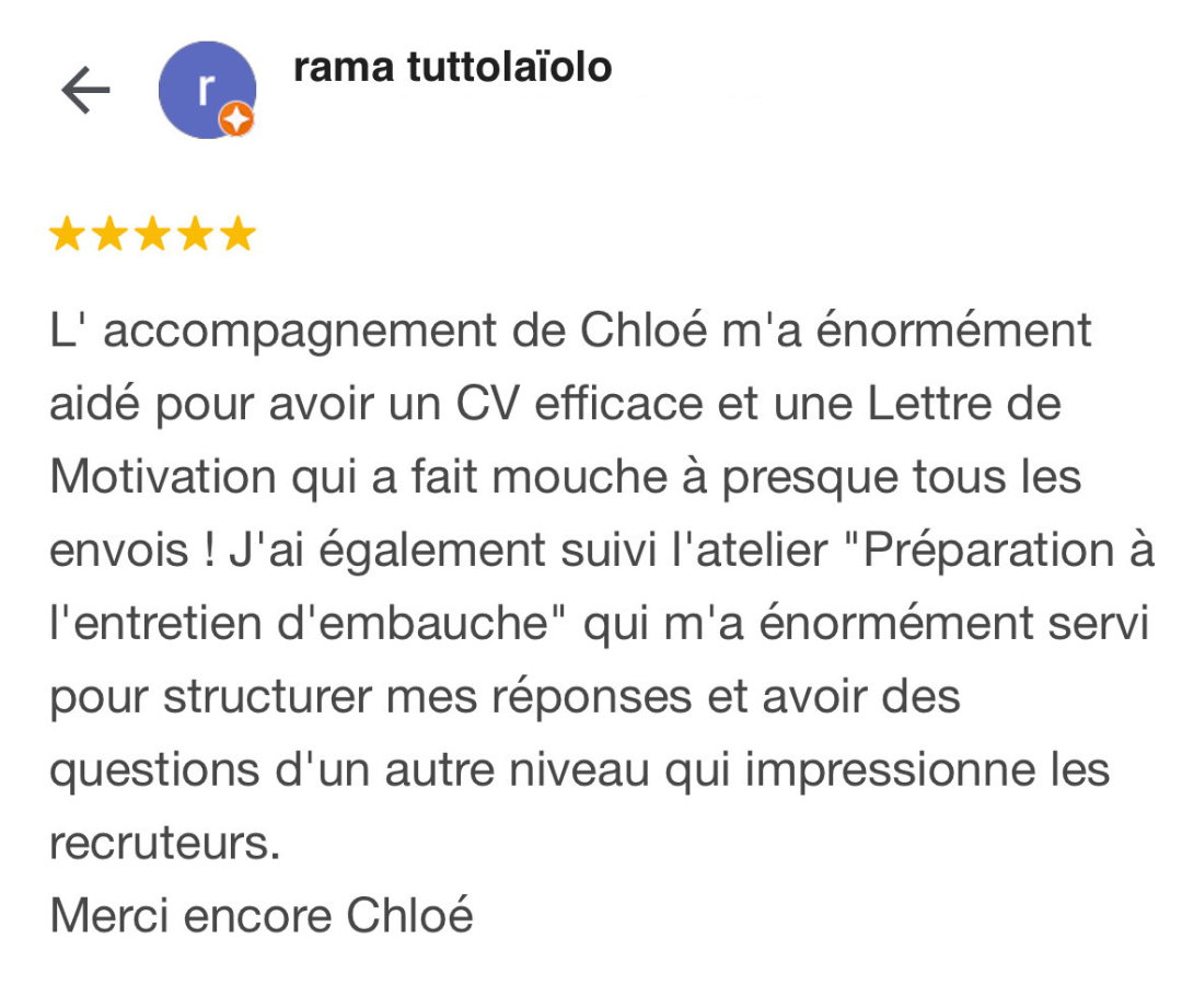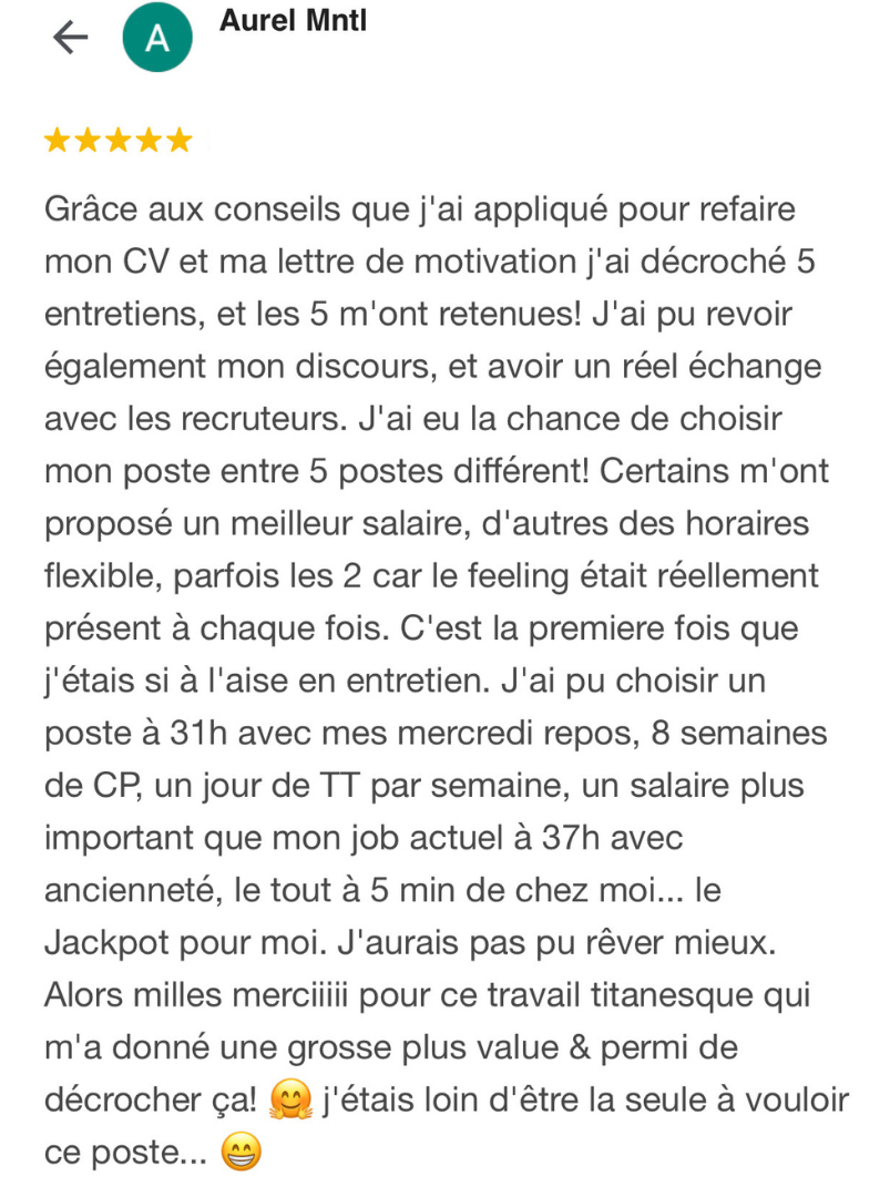 Ou même Maeva qui a fait une candidature remarquable et décroché un entretien après une seule candidature, le lendemain de son envoi