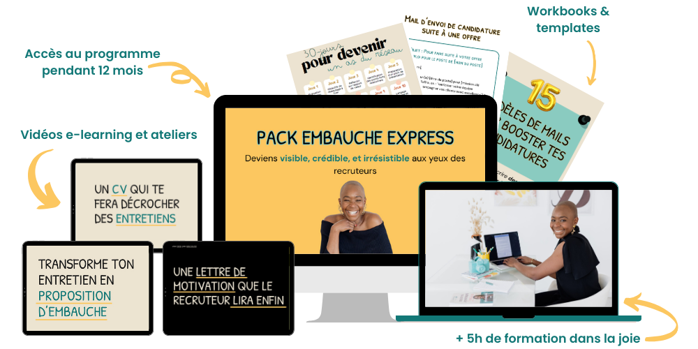 Avec Le Pack Embauche Express, tu as tout ce qu’il te faut pour transformer ton profil, devenir visible, crédible, et décrocher le job que tu vises, dès les prochaines semaines.