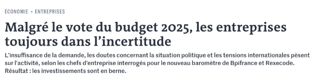 Pire encore : plus de 6 chefs d’entreprise sur 10 “ne veulent plus recruter” à cause de l’instabilité politique et économique. Les projets d’embauche sont repoussés ou annulés.